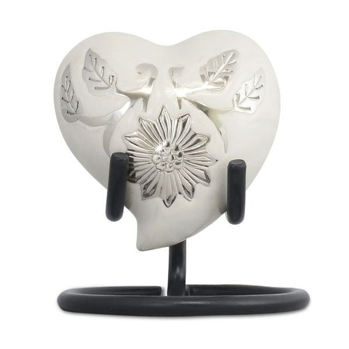 Small/Keepsake Loving White Heart Brass Funeral Cremation Urn for Ashes