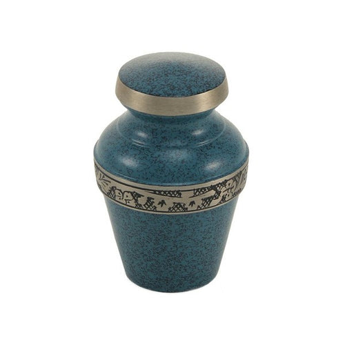 At Peace Memorials Avalon Evening Blue Mini Keepsake w/Velvet Bag Cremation Urn