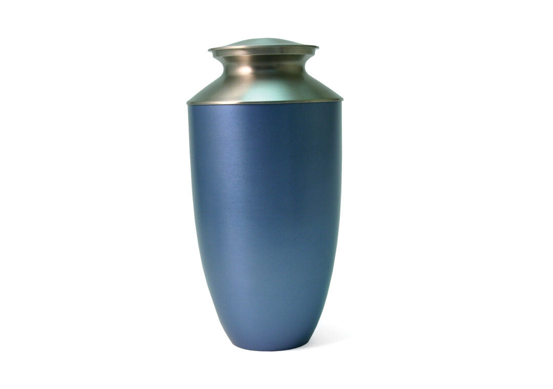 Like the gorgeous coastline, this aluminum and brass cremation urn from our Monterey Collection is a sight to see. A deep jewel-tone blue color and narrow profile make this a statement keepsake size piece. This also includes a soft velvet bag in a rich blue tone.