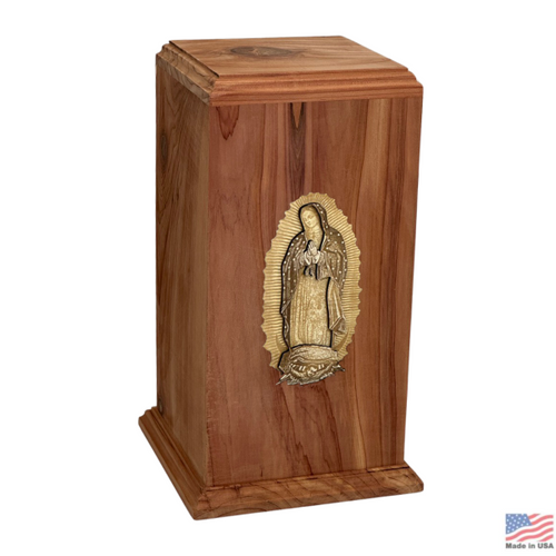 Large/Adult 220 Cubic Inches Lady of Guadalupe Cedar Wood Funeral Cremation Urn for Ashes
