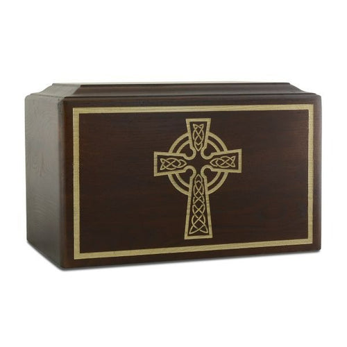 Large/Adult 220 Cubic Inches Solid Ash Celtic Cross Wood Funeral Cremation Urn for Ashes