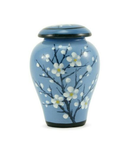 Blue Plum Blossom 4 Keepsake Set Funeral Cremation Urns for Ashes, 10 Cubic Inches each