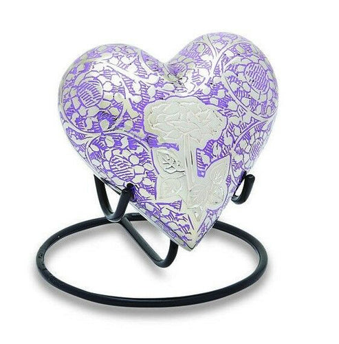Purple Rose 3 Cubic Inches Brass Heart with Stand Keepsake Funeral Cremation Urn