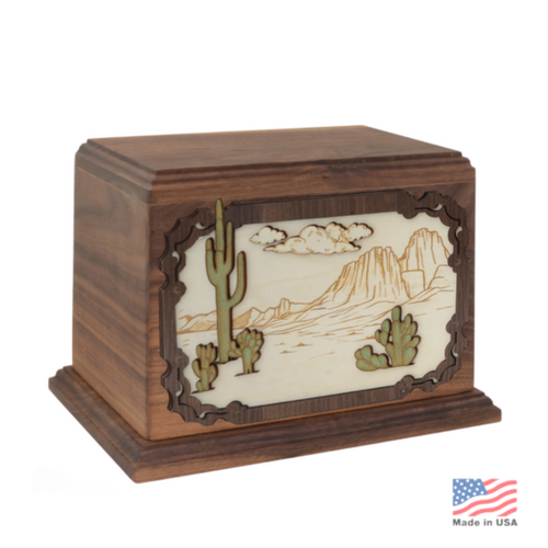 Large/Adult 210 Cubic Inches 3D Art Desert Wooden Funeral Cremation Urn for Ashes