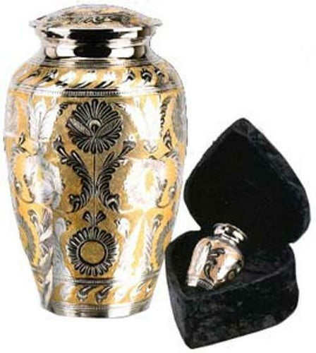 Large/Adult Silver/Gold Color Brass Funeral Cremation Urn W. Velvet Box