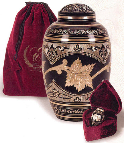 Set of Adult (202 cubic inch) & Keepsake (3 inch) Brass Funeral Cremation Urns