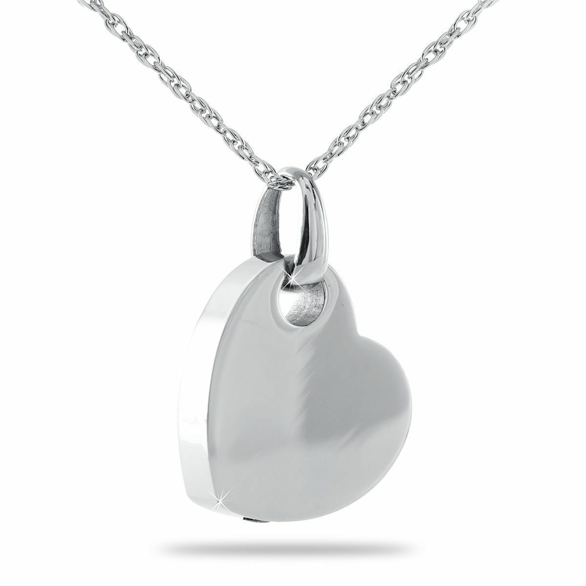 This keepsake pendant is crafted from brass with a sterling silver plating and comes complete with a matching sterling silver chain. Each memorial pendant is presented in a plush velvet gift box and includes instructions, a funnel, and adhesive for easy use. The simple silver heart design offers families a timeless and meaningful way to keep a loved one close.