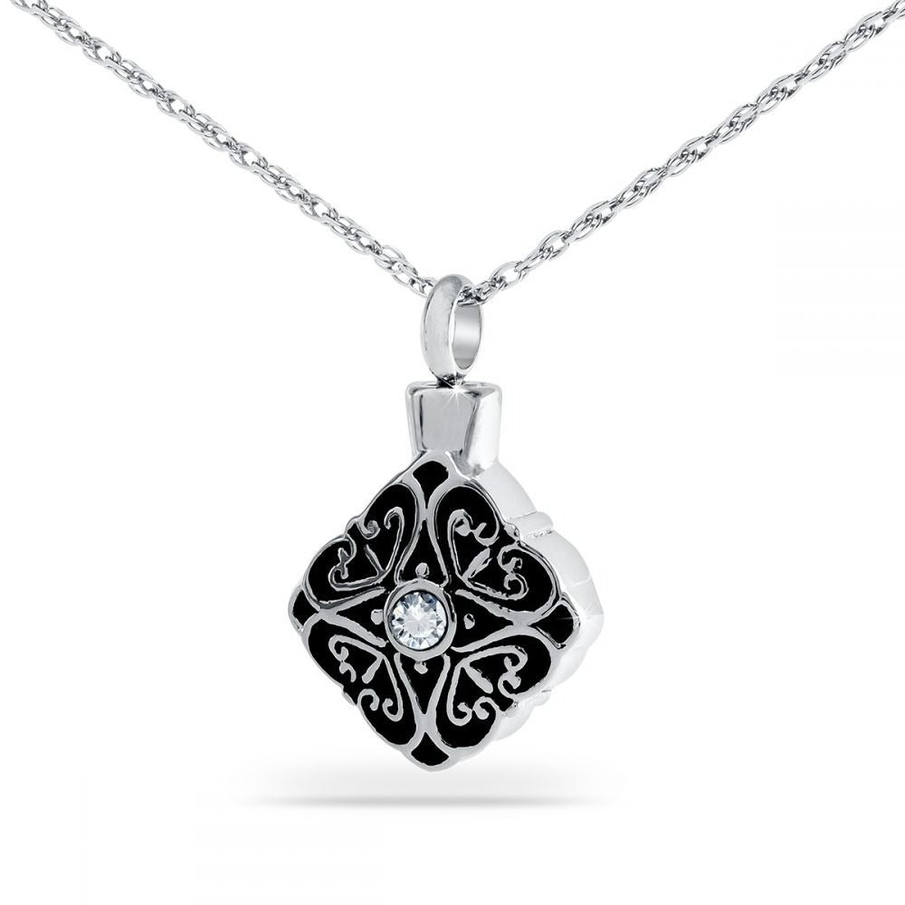 Detailed Crystal Silver Keepsake Pendant/Necklace Funeral Cremation Urn