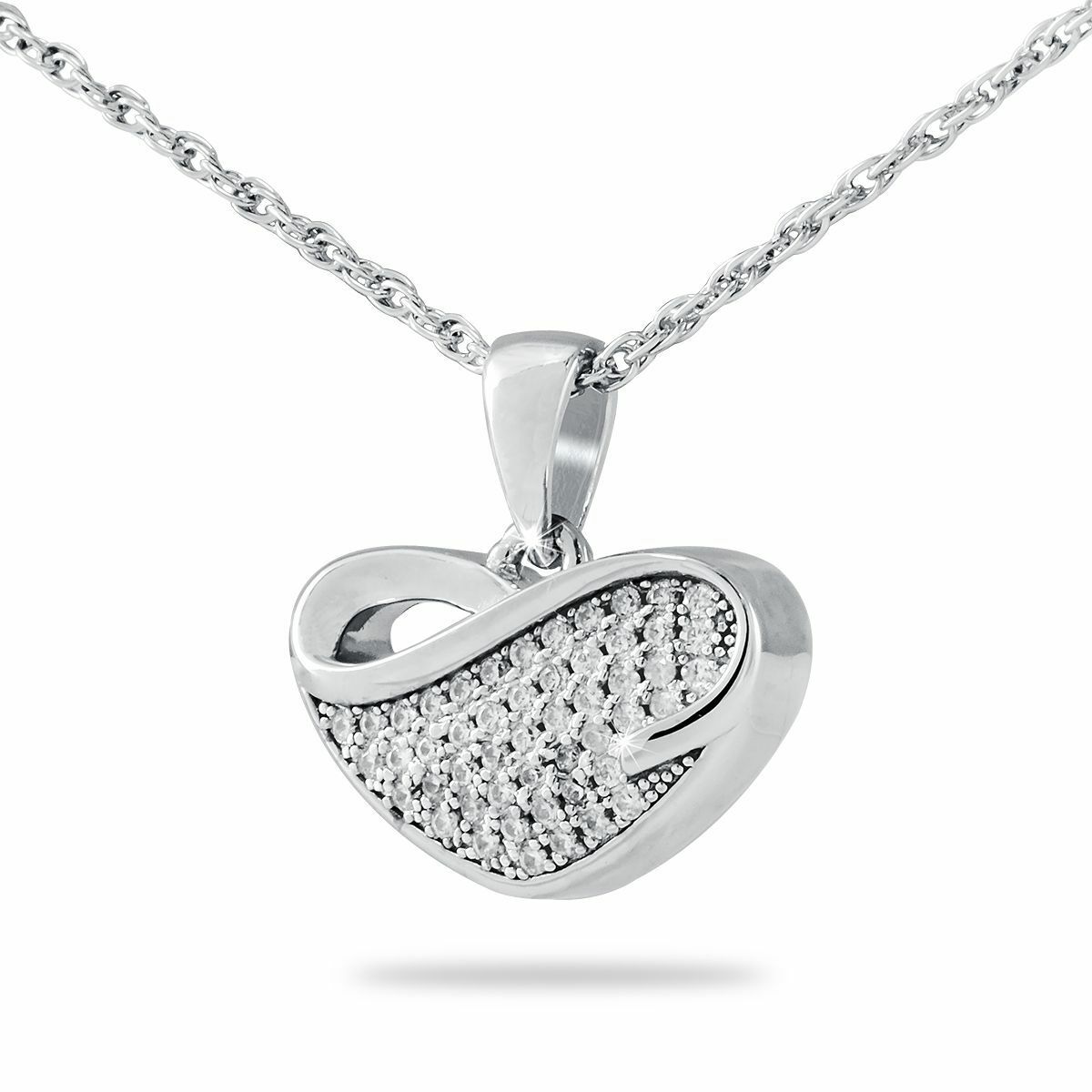 Sterling Silver Gleaming Crystal Heart Pendant/Necklace Cremation Urn for Ashes