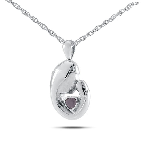 Mother's Love February w/ Amethyst Silver Pendant/Necklace Cremation Urn for Ashes