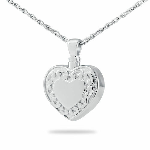 Sterling Silver Sacred Heart Pendant/Necklace Funeral Cremation Urn for Ashes