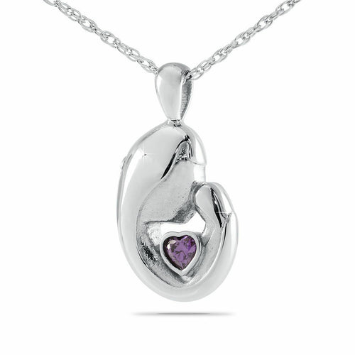 Mother's Love Purple Stone Silver Pendant/Necklace Cremation Urn for Ashes