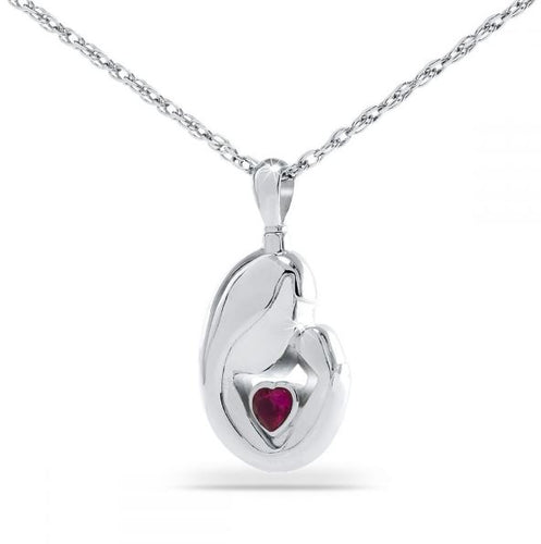 Mother's Love January w/ Garnet Silver Pendant/Necklace Cremation Urn for Ashes