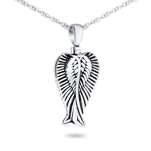 Sterling Silver Cherished Angel Wings Pendant Funeral Cremation Urn w/necklace
