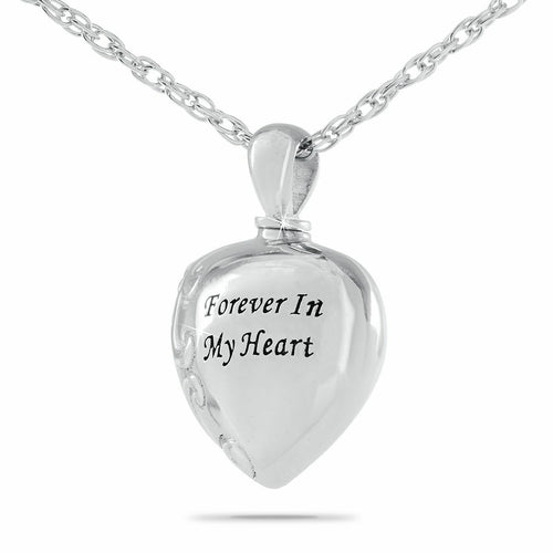 Small/Keepsake Silver Forever in my Heart Steel Pendant Cremation Urn for Ashes