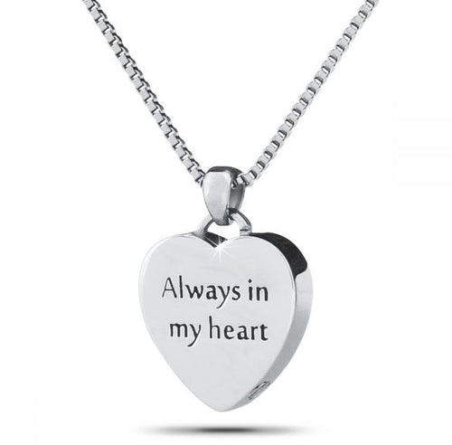 Always In My Heart Printed Steel Keepsake Pendant Funeral Cremation Urn for Ashes