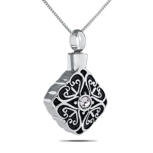 Detailed Crystal Silver Pendant/Necklace Funeral Cremation Urn