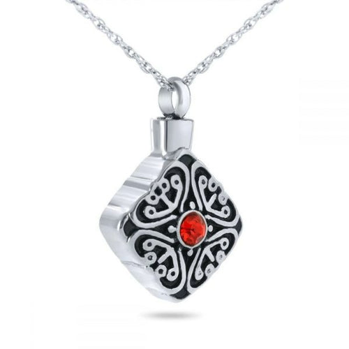 Detailed Red Crystal Silver Pendant/Necklace Funeral Cremation Urn