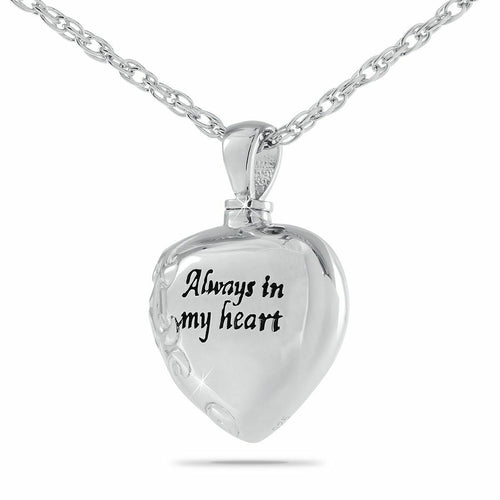 Always in my Heart Stainless Steel Pendant/Necklace Cremation Urn for Ashes