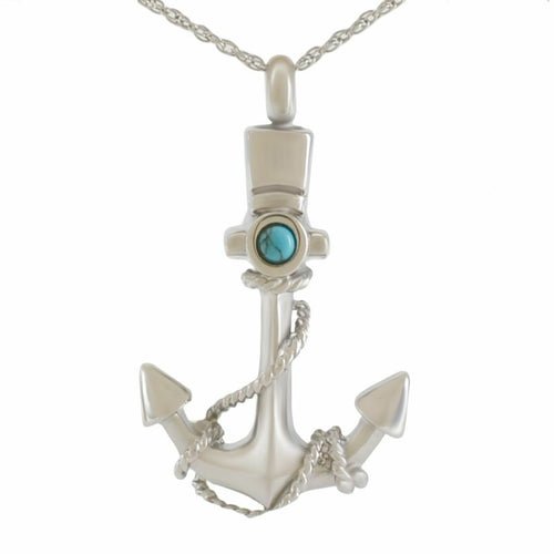 Anchor with Blue Stone Stainless Steel Pendant/Necklace Cremation Urn for Ashes