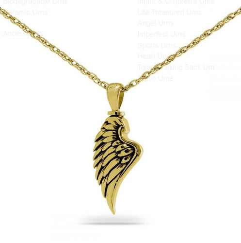 Angel Wing Charm Gold Steel Funeral Cremation Pendant w/Necklace