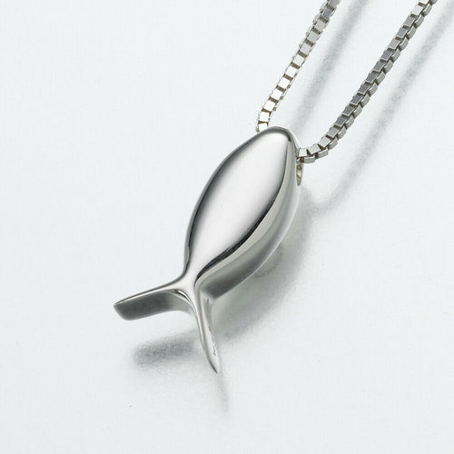 Sterling Silver Fish (Ichthus) Memorial Jewelry Pendant Funeral Cremation Urn