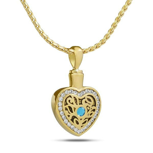 March w/ Aquamarine Gold Steel Pendant/Necklace Funeral Cremation Urn