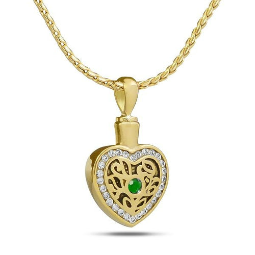 May w/ Emerald Gold Steel Pendant/Necklace Funeral Cremation Urn