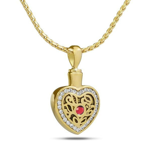 July w/ Ruby Gold Steel Pendant/Necklace Funeral Cremation Urn