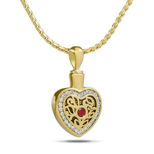 January w/ Garnet Gold Steel Pendant/Necklace Funeral Cremation Urn
