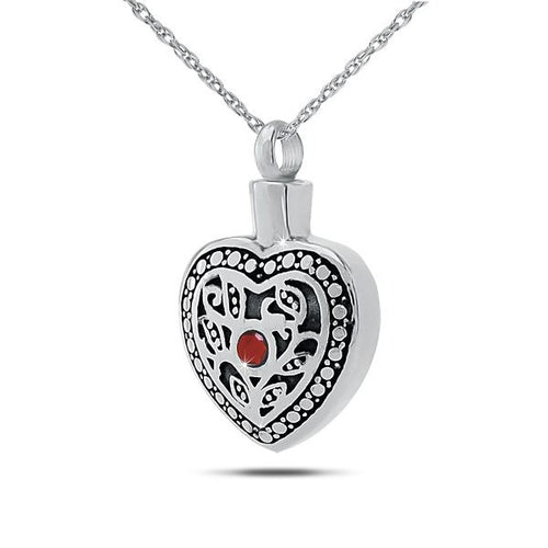 January w/ Garnet Sterling Silver Pendant/Necklace Funeral Cremation Urn