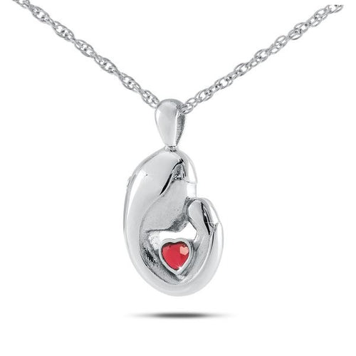 July w/ Ruby Sterling Silver Pendant/Necklace Funeral Cremation Urn