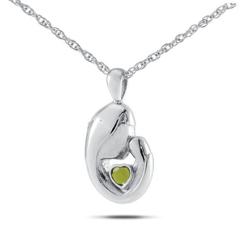 August w/ Peridot Stainless Steel Pendant/Necklace Funeral Cremation Urn