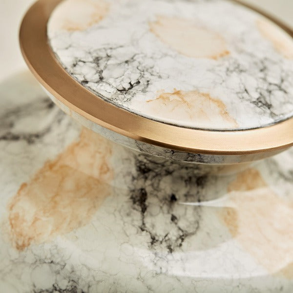 ·      This handcrafted piece is painted white with gorgeous swirls of yellow and black for an uncanny resemblance.
