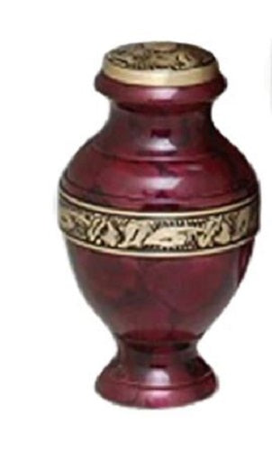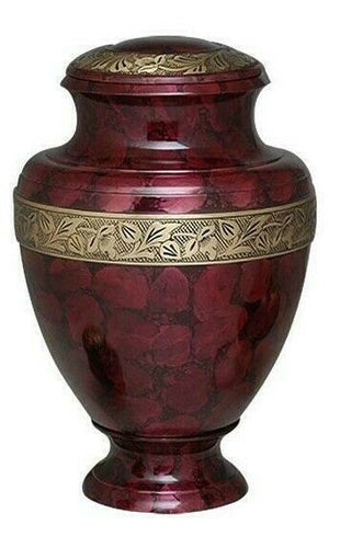 Large/Adult 200 Cubic Inch Crimson Marble Brass Funeral Cremation for Ashes