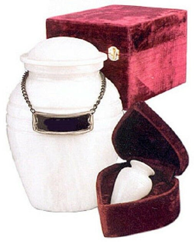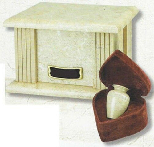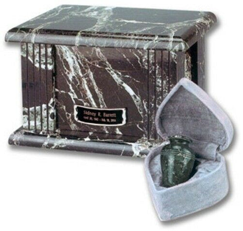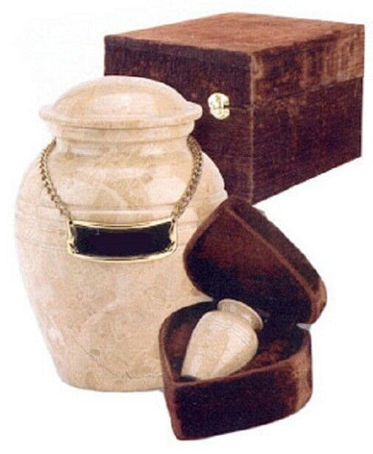 Set of Adult (210 cubic in) & Keepsake (3 in) Marble Cremation Urns w/nameplate