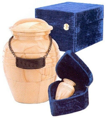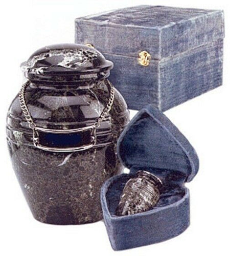 Set of Adult (205 cubic inch) & Keepsake (3 inch) Marble Funeral Cremation Urns