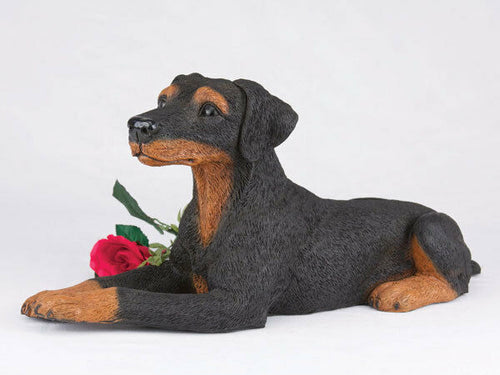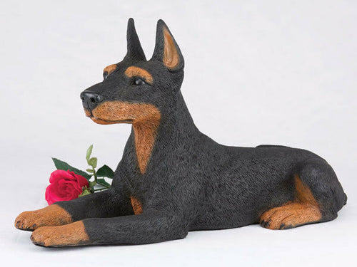 Large 238 Cubic Inches Black & Tan Doberman Pinscher Resin Urn, Ears Down