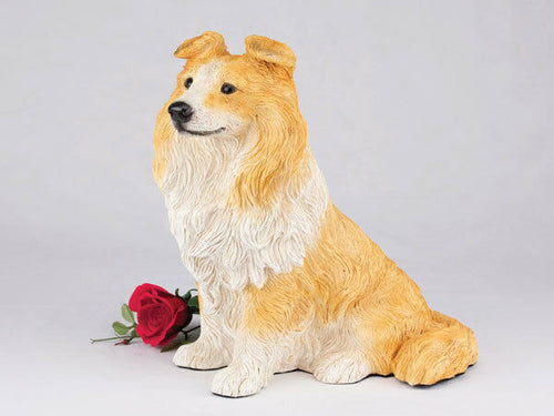 Large 172 Cubic Inches Orange & White Sheltie Resin Urn for Cremation Ashes