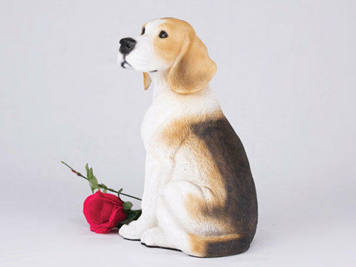 Large 109 Cubic Ins Black, White & Brown Beagle Resin Urn for Cremation Ashes