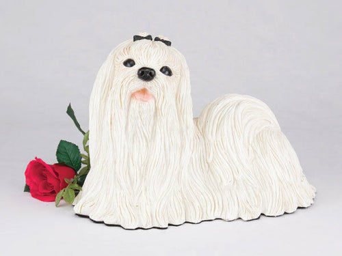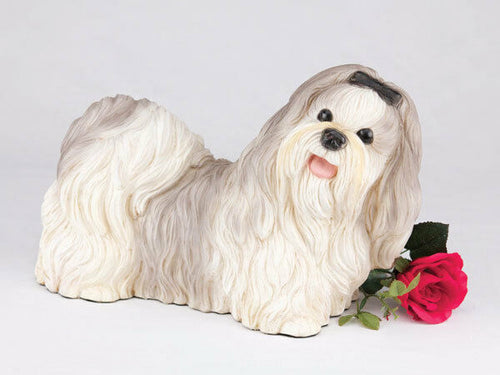 Large 123 Cubic Inches Gray & White Shih Tzu Resin Urn for Cremation Ashes