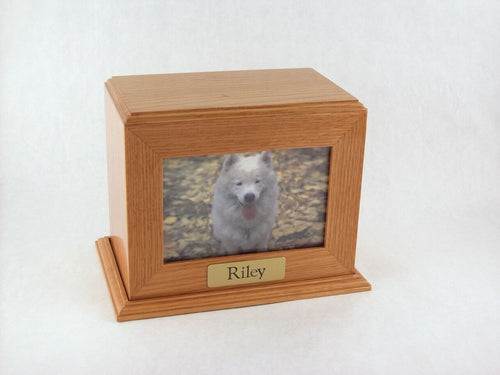 Large 115 Cubic Inches Oak Pet Photo Urn for Ashes with Engravable Nameplate
