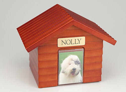 Large 120 Cubic Inches Cherry Doghouse Urn for Ashes with Engravable Nameplate