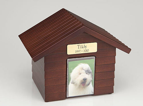 Large 120 Cubic Inches Walnut Doghouse Urn for Ashes with Engravable Nameplate