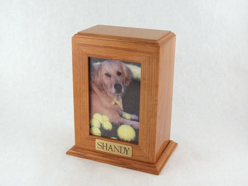 Large 115 Cubic Inches Maple Pet Photo Urn for Ashes with Engravable Nameplate