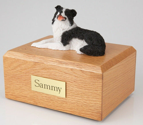 Border Collie Lying Pet Funeral Cremation Urn Avail in 3 Diff Colors & 4 Sizes
