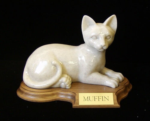 30 Cubic Inches Faithful Feline Urn in Laying Position for Ashes, with base