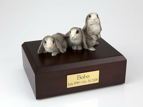 3 Gray Bunnies Figurine Rabbit Pet Cremation Urn Avail 3 Different Color/4 Sizes