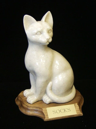 30 Cubic Inches Faithful Feline Urn in Sitting Position for Ashes, with base