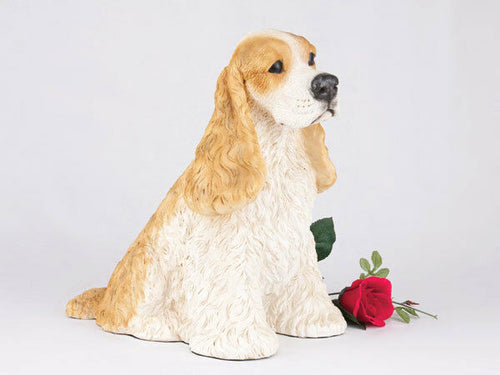 Large 233 Cubic Ins Tan & White Cocker Spaniel Resin Urn for Cremation Ashes